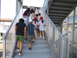 9月30日の昼休み時間に、地震・津波対応の避難訓練を行いました。今回は、近くに教師がいない場合の想定で、自分たちだけで避難できるかの訓練を行いました。