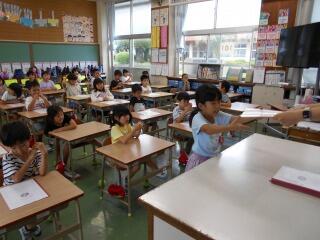 予想していた以上に、子どもたちはスムーズに避難できました。また、上級生が下級生を誘導してくれる姿も見られ、感心したところです。