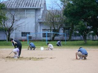 参加してくださった保護者や子どもたちのおかげで、運動場がきれいになりました。これで、運動会当日を迎えるだけとなりました。参加してくださった皆様、ありがとうございました。