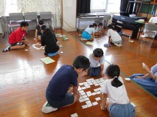 7月20日に、1学期最後の「牧水かるた大会」の練習をしました。春木前校長先生も来てくださり、激励のことばをくださいました。