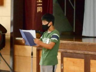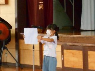 終業式では、2年生と6年生の代表児童が、1学期を振り返って、頑張ったことなどを発表しました。立派な発表でした。