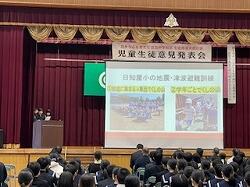 日知屋小学校からは6年生3名が、防災をキーワードにして発表しました。