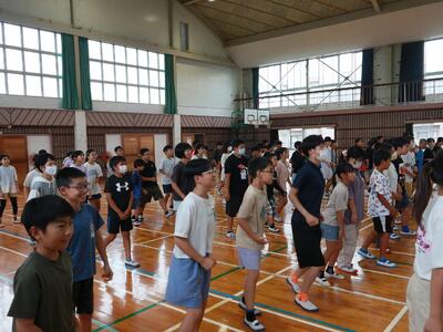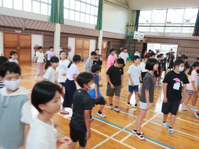6年生全員が、総合的な学習の時間で「ひょっとこ踊り」の練習を行いました。地域の方が7名来られて、お囃子に合わせて所作の練習をしました。正調ひょっとこの舞は、静と動の所作がしっかりしており、結構ハードです。しかし、自然と笑顔が溢れるのが、ひょっとこ踊りの良さでもあります。奉納舞がありますが、しっかり覚えて頑張ってほしいです。