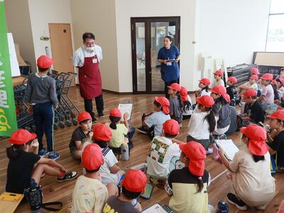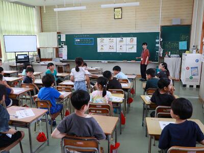 さらに、お米に関わる豆知識として、「米」という漢字が八十八の手間をかけて作られることに由来しているという話を聞き、子どもたちは驚いた様子でした。講座の最後には、オープンスクールで自分たちが育てた米を販売する活動に向けて、「もっと知りたい」「がんばりたい」と意欲を高めている姿が見られました
