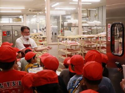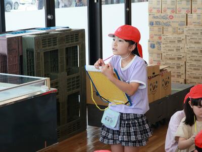 今日は、とても暑い一日なりました。学校の中もとても暑かったのですが、3年1組の皆さんは歩いてマルイチの見学に出かけました。途中、水分を取りながら20分ほどで到着。2つの班に分かれ、先に店長さんといっしょに普段入れない場所に入り、調べ学習をしました。バックヤードには配送のトラックが来ていたり、ー20度の冷蔵庫をのぞいたりと体験もしました。お店の中では、買う人が分かりやすい工夫などを調べ、お店の人にはお仕事のことを聞いていました。まとめの学習が楽しみです。
