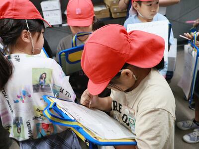 1年生は五十猛神社まで行き、帰りに学校の近くの公園で学習をしました。五十猛神社の往復は、みんなきちんと一列で歩いていました。公園で遊ぶときに様子を見に行くと、虫を探す子、遊具で上手に遊ぶ子などなどとても楽しそうな笑顔をみることができました。