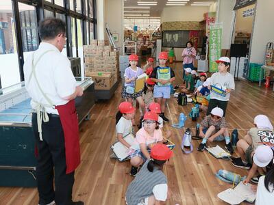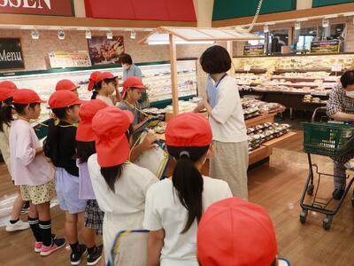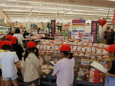 3年2組と3組が、マルイチ財光寺店に社会科見学に出かけました。(1組は、16日月曜日に行きます。)買い物で行くお店の一つではないかと思いますが、子どもたちは学習の課題に合わせて、改めてお店の中の品物の配列、販売されているものの生産地、販売の工夫、お店の安全安心のための設備などなど細かく調べていました。持参したワークシートにびっしりメモをしていました。社会科見学の醍醐味は、普段入ることのできないバックヤードの見学ができること。「見えるところ」と「見えないところ」での様々な工夫を知り、働く方々の役割を知ることができました。様々な質問をたくさんしていました。学習のまとめが楽しみです。