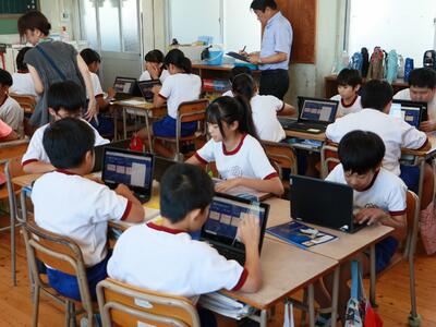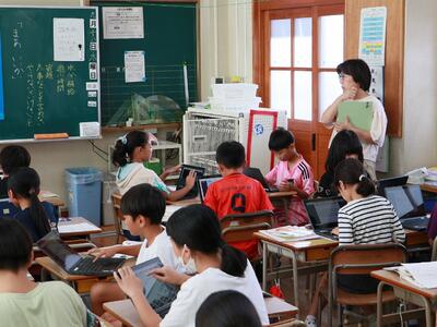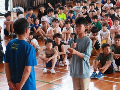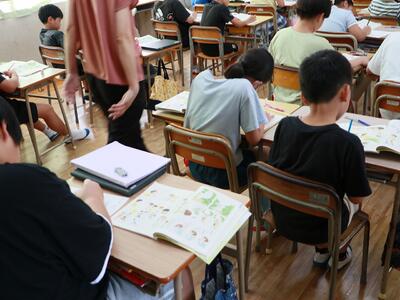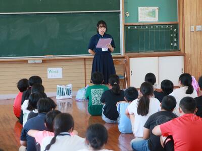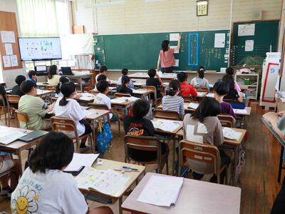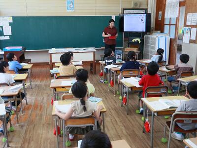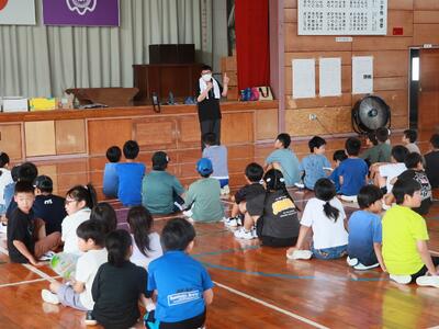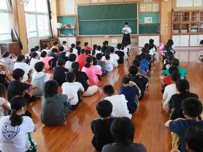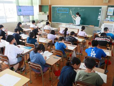 5年生は総合的な学習の時間に、日向市のJAの方をお招きして「お米づくり」に関する出前講座を行いました。講座では、田植えから収穫、精米までの年間の流れを、写真や実物を交えながら分かりやすく説明していただきました。また、日向市の稲作が抱える課題として、高齢化による担い手不足や耕作面積の減少が進んでいること、天候の変化により安定した生産がむずかしくなっていることなども教えていただき、子どもたちは自分たちの地域の農業について考える貴重な時間となりました。