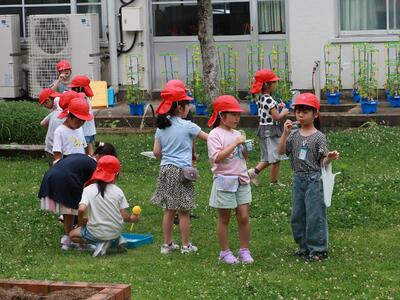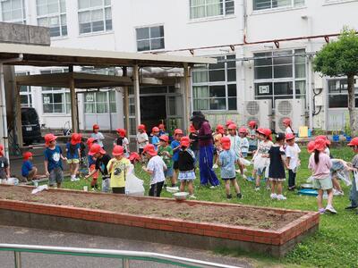 2年生が教室の前で育ててきたお芋の収穫をしました。つるに手こずりながらも目的のお芋に向かってまっしぐら!手のひらサイズから顔の大きさのものまで大収穫でした。お芋を手に取り、とてもよい笑顔でした。さて、このお芋は、何に変身するのかな?