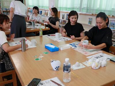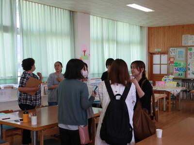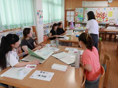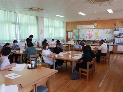 第2回7月30日「職員派遣」 財小と財南小の職員が幼保7園を参観する。