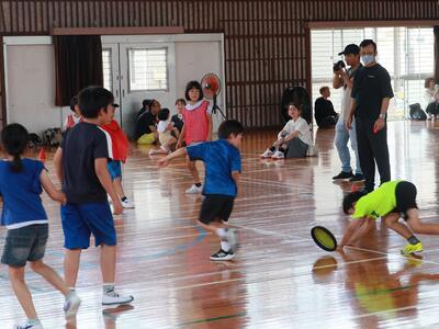 PTA主催の校区内スポーツ大会が開催されました。校区内各地区からそれぞれ1~2チームが出場し、全10チーム総当たりで「ドッジビー競技」の熱戦が繰り広げれました。保護者や子ども同士の応援もあり、大変盛り上がりました。各チームのまとまりを感じるよい大会でした。