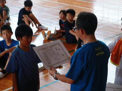 お迎えに来てくれた子どもたちが、プラカードを持って出迎えてくれました。財っ子のつながり、優しさ、思いやりを感じた瞬間でした。