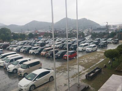予定されていた休息場所の霧島SAでの最後の停車です。当初は、解散式をする予定でしたが、2号車がその前にトイレ休息を入れることになり、遅れました。そのため解散式は、火曜日に簡単に実施することになりました。3台は時間差ができましたが、17時15~25分の間で到着です。たくさんのお土産話をはやく聞きたいものです。