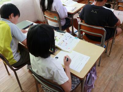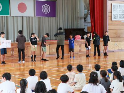 4年生2学級で非行防止教室がありました。日向警察署の方の演技と説明だけではなく、子どもたちも役割演技をしながら「どのように断るのか」「止めるために何と言うか」などを自分で考え、表現する学習をしました。「万引」が「犯罪」であること、そのことで起こる影響などを学ぶことができました。※写真は4年1組の様子です。