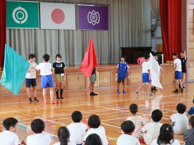 財っ子の登下校を見守ってくださる安全監視委員の方々をお迎えして集会を開きました。日頃の感謝を伝えるとともに、地域の方々とつながることで、登下校のみならず日常生活における絆を深める機会になったと思います。これからもよろしくお願いいたします。