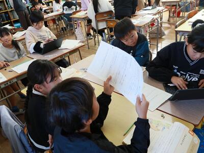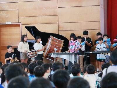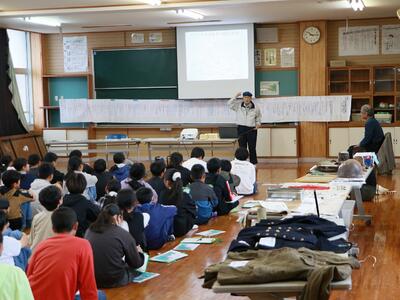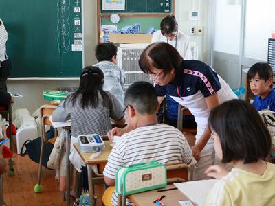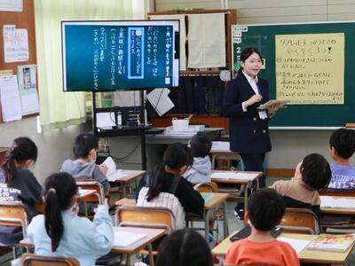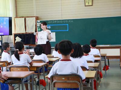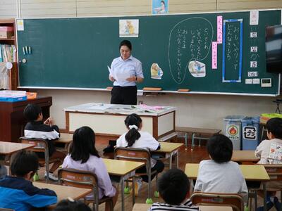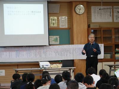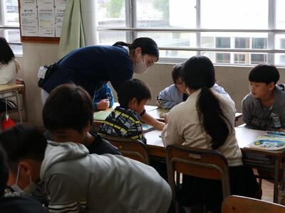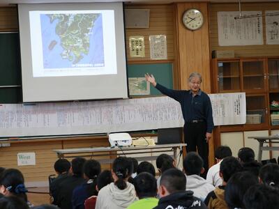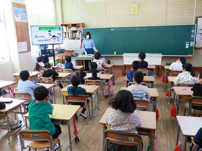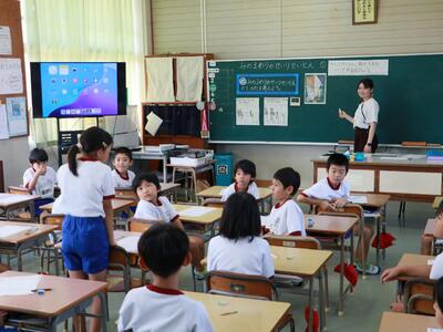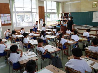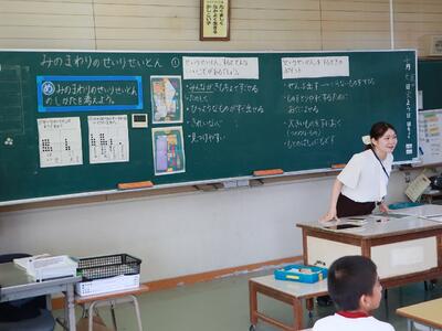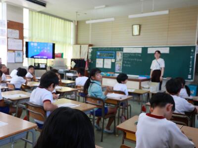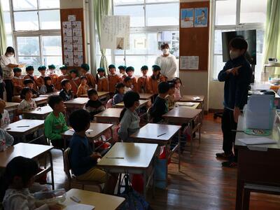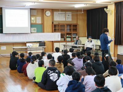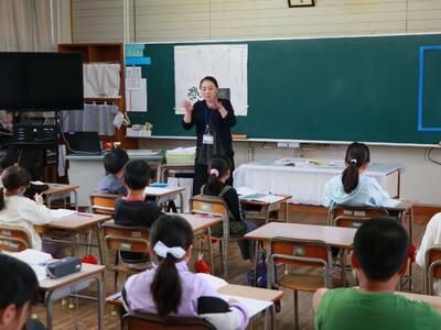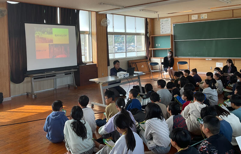5年生は総合的な学習の時間に、日向市のJAの方をお招きして「お米づくり」に関する出前講座を行いました。講座では、田植えから収穫、精米までの年間の流れを、写真や実物を交えながら分かりやすく説明していただきました。また、日向市の稲作が抱える課題として、高齢化による担い手不足や耕作面積の減少が進んでいること、天候の変化により安定した生産がむずかしくなっていることなども教えていただき、子どもたちは自分たちの地域の農業について考える貴重な時間となりました。