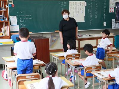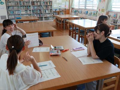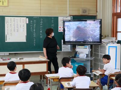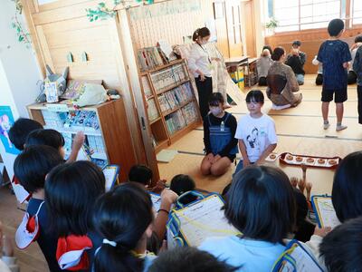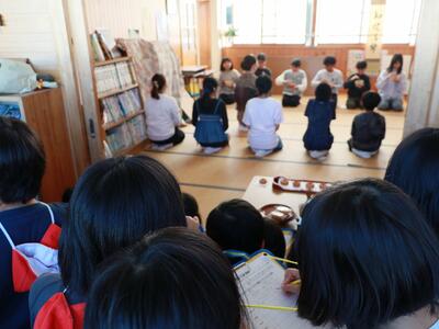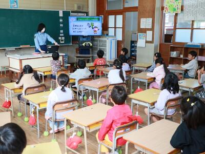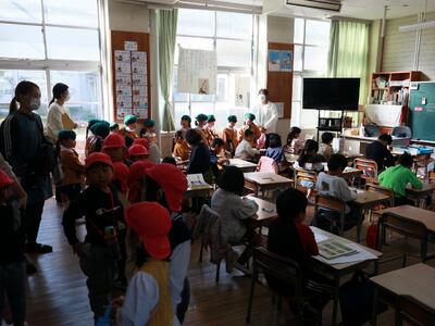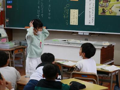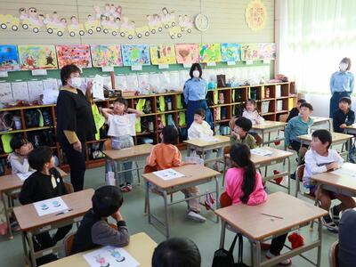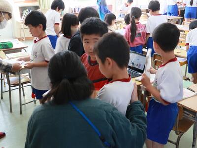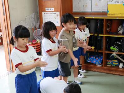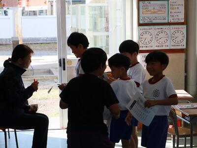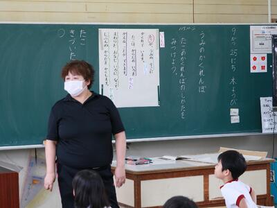 1年生と園児の交流会がありました。最初は、教室での授業の見学をしました。その後、体育館で交流会がありました。1年生は、とても授業に集中していて、とても張り切っていました。園の先生方から「成長していますね~」と感想をいただきました。