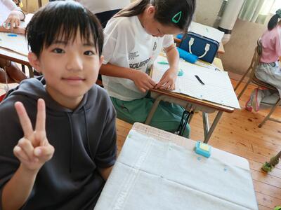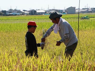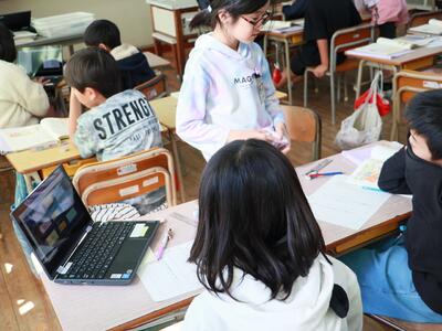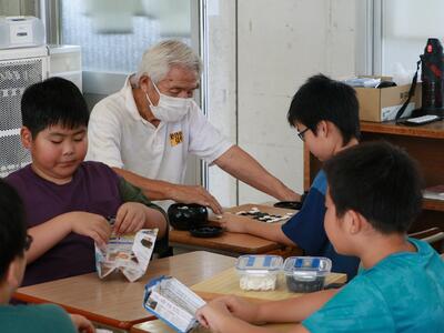 さらに、お米に関わる豆知識として、「米」という漢字が八十八の手間をかけて作られることに由来しているという話を聞き、子どもたちは驚いた様子でした。講座の最後には、オープンスクールで自分たちが育てた米を販売する活動に向けて、「もっと知りたい」「がんばりたい」と意欲を高めている姿が見られました
