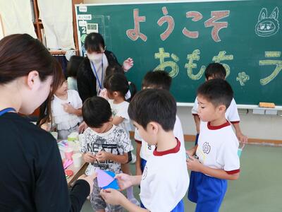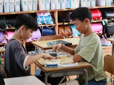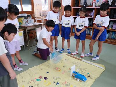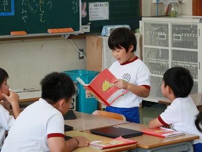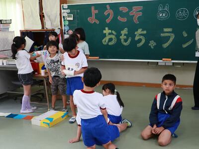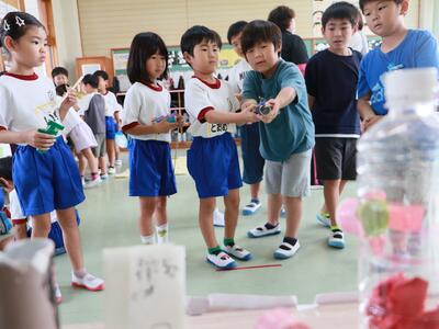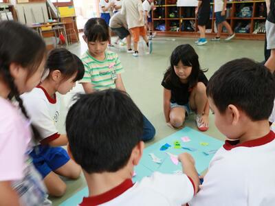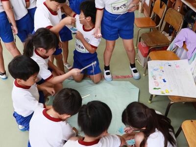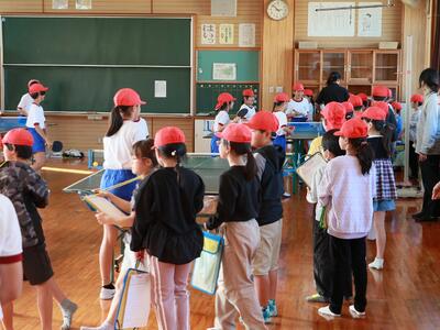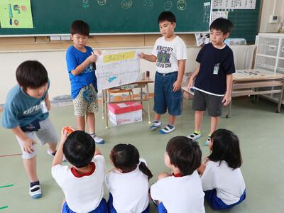 生活科で2年生が企画をして1年生と一緒に遊ぶ学習がありました。2年生は、この日のために学級それぞれでゲームを考え、道具を作り、当日の流れや進め方を相談しながら準備を進めてきました。とても上手に1年生にゲームの方法を説明したり、道具の使い方を教えたりしていました。1年生も最初は緊張した感じでしたが、後半はとても楽しそうでした。異学年での学習は、互いの成長を感じられるよい機会ですね。