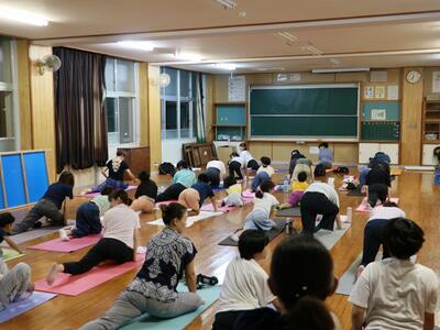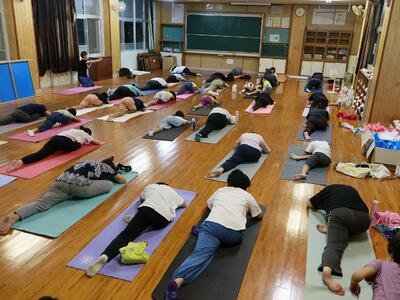 30名近い参加者でヨガ教室が開催されました。講師に永溝智美さんをお迎えして、ヒーリングの音楽が流れる中、参加者の静かな呼吸が聞こえる中での雰囲気は、皆さんの日頃の疲れやストレスが整い、すっきりした穏やかな気持ちになっておられるようでした。秋風を感じた10月のスタートの日。心も身体もスッキリリラックス!!