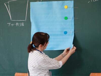 5年3組で家庭科の学習があり、そこに人財バンクから4名の方がお手伝いにきてくださいました。中田先生の説明を聞きながら取り組んでいました。しかし、寸法の測り方やまち針の刺し方などの不安なことを人財の方々に聞いて進めていました。子どもたちに寄り添ってくださり、子どもたちも自然と笑顔で学びを進めていました。