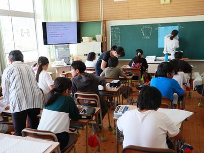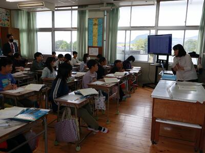 本校は、日向市授業力向上プロジェクト推進校に指定されており、その学校訪問と授業公開が行われました。午前中は、北部教育事務所と市教委が来られ、すべての学級の授業を参観され、教員一人一人に今後に向けての示唆をいただきました。午後は、市内の小中学校から90名の先生方が来られ、各学年の授業を参観しました。授業後に行われた協議会では、活発な議論がなされていました。市教委をはじめ参観された先生方からは、本校の研究実践に対する賞賛の言葉をたくさんいただきました。今後も子どもたちが主体的に学べる授業を心がけたいと思います。