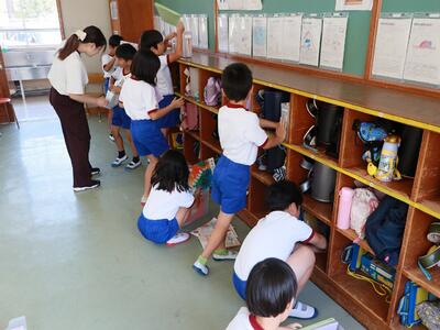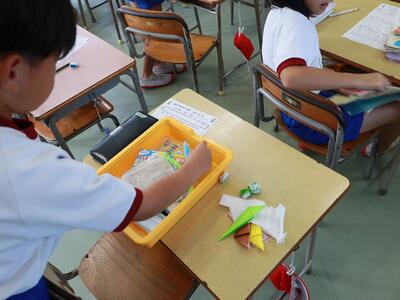 2年2組来須先生の初任者研修の一環として「学級活動」の授業研究会がありました。「整理整頓」ということについて皆で対話し考えて、実際に自分の机の引き出しや棚を片付けました。片付けた後に「すっきりしました。」「いい気持ちです。」という感想を話していました。今週、チャレンジ週間だそうです。続けていって「整理整頓」をするとよいことに気づき、続けていってくれるとよいですね。