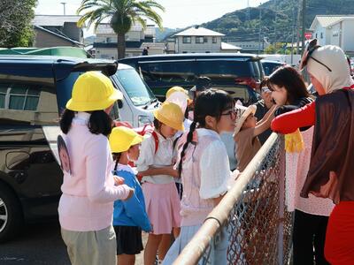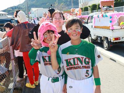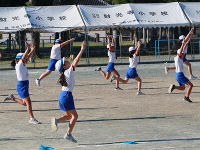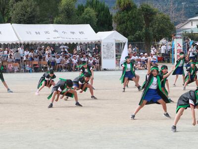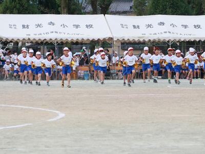 財光寺地区秋祭りとしてのパレードに参加してきました。今年は、財光寺南小の井川校長先生をはじめ7名の先生方と本校から馬場校長先生を含む6名の先生方合同チーム「財っ子応援団」で参加してきました。秋晴れの素晴らしい天気でしたが、風がつよく肌寒かったです。途中から子どもたちも参加してくれて、多いときは30人くらいで踊りながら財光寺南小から五十猛神社まで歩きました。多くの応援をいただきありがとうございました。