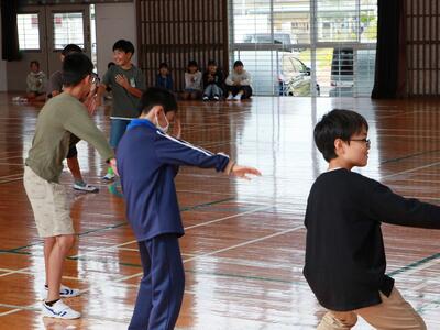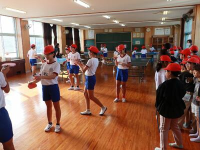 6年生全員が、総合的な学習の時間で「ひょっとこ踊り」の練習を行いました。地域の方が7名来られて、お囃子に合わせて所作の練習をしました。正調ひょっとこの舞は、静と動の所作がしっかりしており、結構ハードです。しかし、自然と笑顔が溢れるのが、ひょっとこ踊りの良さでもあります。奉納舞がありますが、しっかり覚えて頑張ってほしいです。