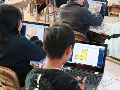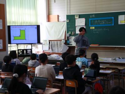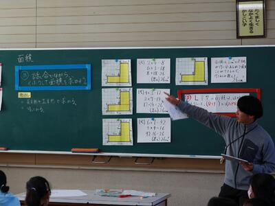 11月11日の公開授業に向けての事前研究授業を、4年1組の担任の都甲先生が、4年2組で実施しました。算数科「面積」の授業でした。公開授業に向けて担任ではない学級で授業を行い、発問や板書、指導の手だてが効果的かを確認しました。子どもたちは、とても熱心に取り組むことができて、様々な考えを出していました。