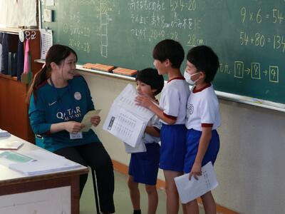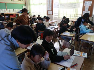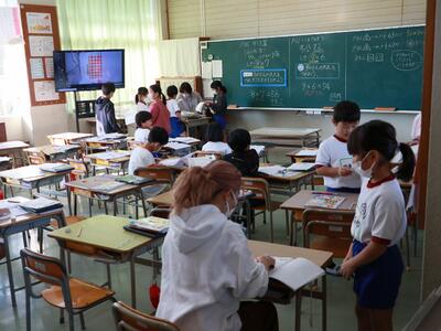 2年生の教室から元気な声が聞こえてきました。算数の時間に「花まるサポーター」の方々にご協力いただき、「かけ算」チャレンジをする声でした。いろんな言い方にチャレンジしていました。「かけ算大会」があるので、現在、猛特訓中です。