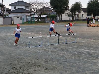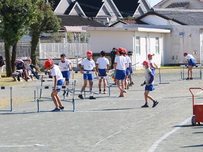 今年は、市内の小学校6年生が大王谷陸上競技場に集まって行う日向市陸上記録会が、各学校で行われることになりました。本校では、11月14日に計画をされており、それに向けた練習に取り組みました。普段、なかなか経験しないハードルや高跳びなどがありましたが、子どもたちは一生懸命頑張っていました。本番が楽しみです。