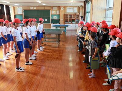 雨で伸びた第1回めの全体練習が行われました。今日は、開会式の練習で「挨拶」「礼」「移動方法」などを確認しました。体育主任の下田先生の話をしっかり聞いて、一つ一つの動作をしっかりできていました。「子どもひとりひとりが主役」の運動会本番に向けて練習を積み重ねていきます。
