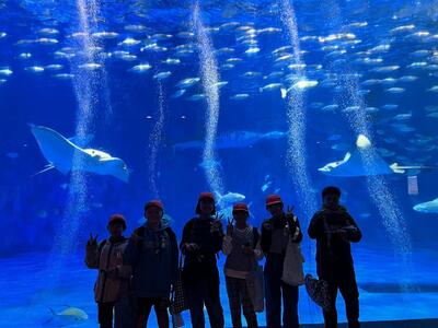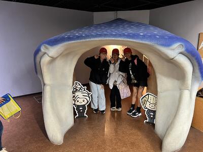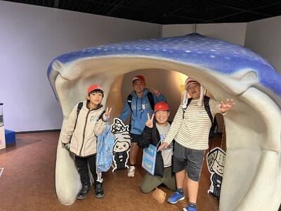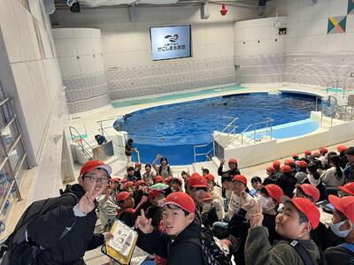 予定通り、かごしま水族館に到着。イルカショーをみたり、館内の水槽を見て回ったりしながら、思い思いに楽しんでいたようです。どんなお土産を選んだのかな。大水槽に圧倒された子どもたちもいるかもしれません。今日は、みんな「魚博士」になったことでしょう。