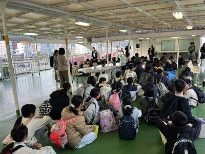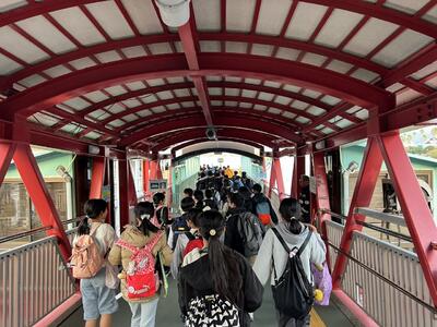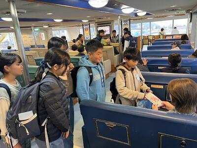 かごしま水族館見学から、桜島フェリーに乗りお買い物が目的の桜島物産館に向かいました。事前に何人かの6年生に聞いたところ、この買い物が最大の楽しみと話した子どももいました。感謝の気持ちと想い出のために何かよいお土産があるといいですね。お土産を買うのも修学旅行の楽しみの一つですね。