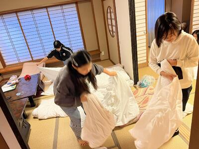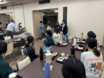 いよいよ2日目が始まりました。部屋の片づけから始まり、美味しい朝食を食べています。みんなで食べる朝食は、子どもたちの楽しい時間です。この後の自主学習に向けて体調を整えてほしいものです。
