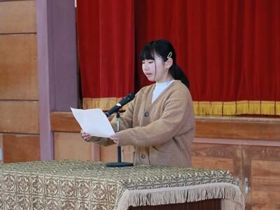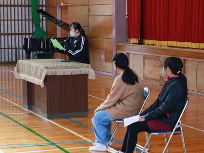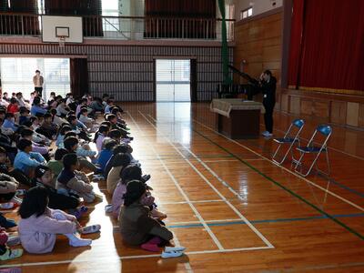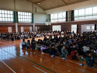 体育館で終業式が実施されました。2人の作文発表では、2学期の思い出とともに3学期への目標が発表されました。校長先生からは、冬休みに気をつけてほしいこと(※詳細は学校通信12月号参照)が4つあるので、お家の人と話してほしいというお願いがありました。その中で特に、小学生がルールを守っているにもかかわらず死亡事故が起きていることについて具体的な例を示してお話がありました。式が終了後、2学期にスポーツ少年団等の成果を紹介し、表彰を行いました。その後、生徒指導主事の濵田先生から冬休みに気をつけてほしい「水」「火」「人」「車」をキーワードにしてお話がありました。年末年始事故なく過ごしてほしいと思います。