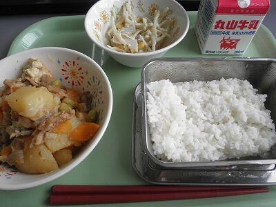 7月19日の給食 麦ごはん 牛乳 豚じゃが かみかみサラダ