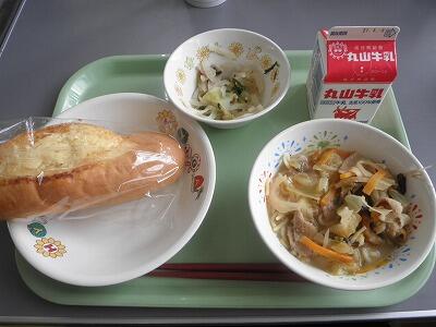 6月2日の献立 減量マヨネーズパン 牛乳 味噌ラーメン チンゲン菜のナムル