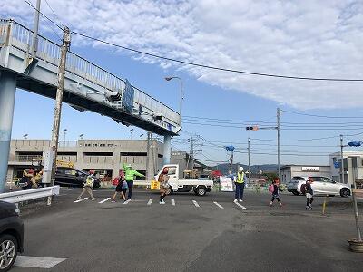 カメラのキタムラ側の大きな交差点にある陸橋が今通れません。その代わり簡易な横断歩道ができていて、警備員さんが児童の登下校時は渡してくれています。ただし、土日は警備員さんもいないので、子供達には、できるだけ他の安全な横断歩道を利用した方がいいねと伝えています。