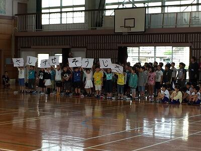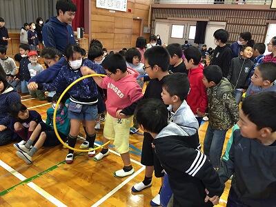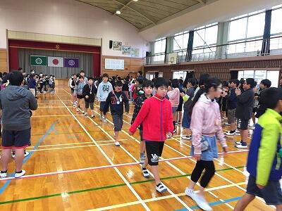 まずは、体育館でお別れ集会を行いました。地区対抗「フラフープくぐり」競争、各学年からの呼びかけなど、全校児童で楽しい時間を過ごすことできました。特に5年生の実行委員の子どもたちの進行、運営の動きがすばらしかったです。6年生は、お礼の気持ちのこもったすばらしいエールを披露してくれました。