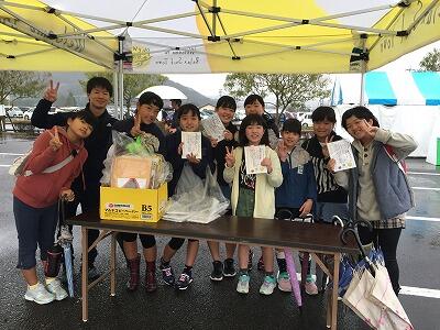 最後は、地域の方々や保護者の皆さんと一緒に記念撮影を行いました。その後、日向市環境政策課の方に、ごみを収集に来てもらいました。「お倉ヶ浜の環境を良くして、はまぐりが再び取れるようにしたい。」という願いのもと、清掃活動をがんばりました。