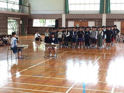 今週は、1組、2組それぞれが”自作劇”で海岸をきれいにすることの大切さを1~5年生に訴えました。どちらも随所にアイデアと工夫が散りばめられた見応えのある劇に仕上がっていました。