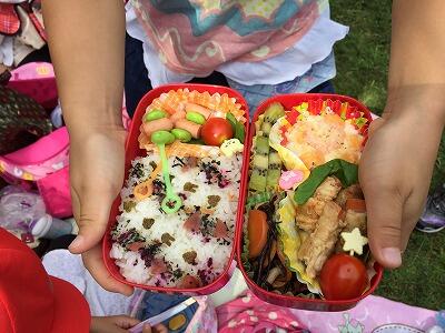 遠足の日はお弁当の日でした。アイデアいっぱいのお弁当がそろいました。