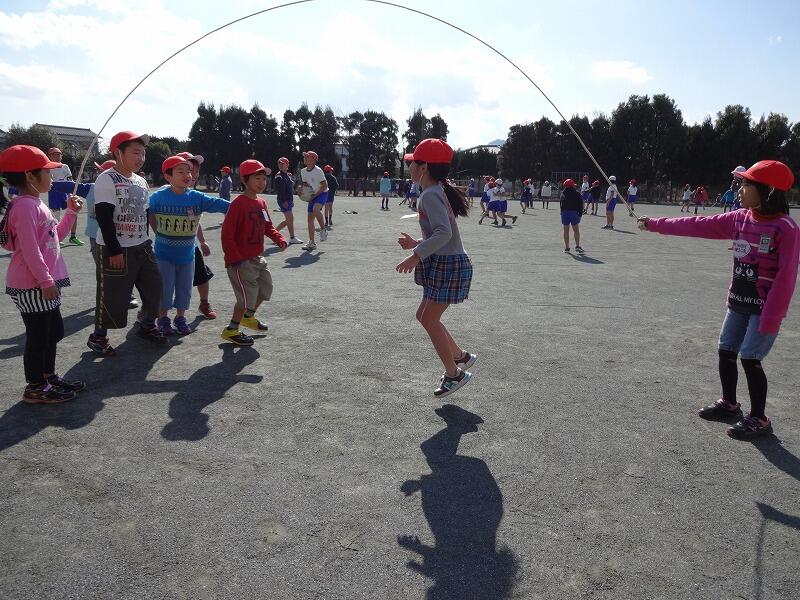 体育では、なわとび大会に向けて大縄跳びの練習中です♪
