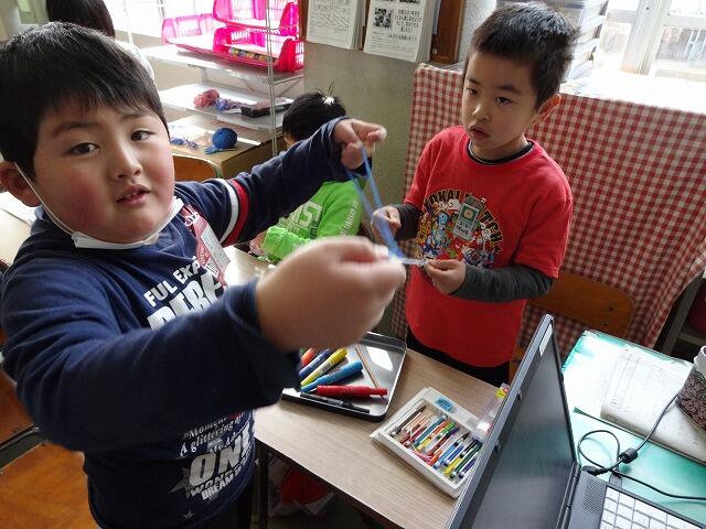 1年生は、よく話を聞いて楽しんでおもちゃを作ったり、おもちゃで遊んだりしました。