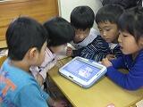 タブレットPCで学校の様子の写真を撮り、園児のみんなに分かりやすいように文字を書き込みました。