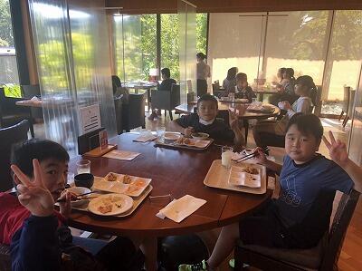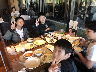 朝ご飯の様子です。ちょっぴり眠そうな子どもたちも・・・。