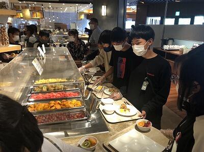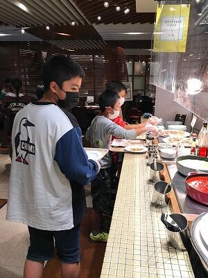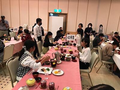 次の写真は、昨日の夕食の様子です。豪華なメニューに、みんな大満足だったのでは・・・。