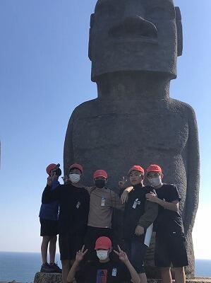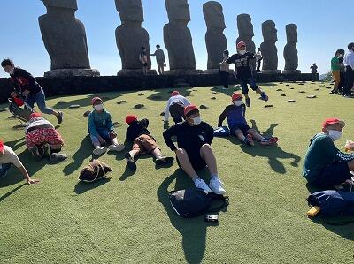 西都原に到着し、西都原古墳群や考古博物館を見学したり、勾玉作り体験をしたりしました。天気もよく、コスモスもきれいで、とっても気持ちよさそうです。